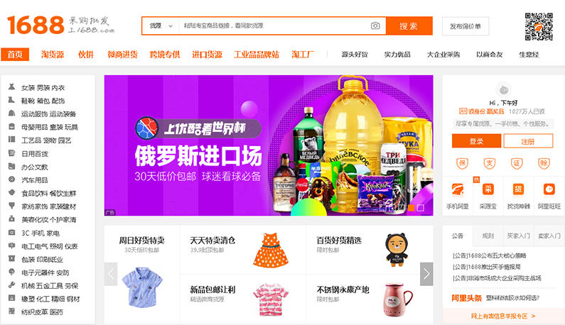 1688 là một trang bán sỉ thuộc Alibaba Group, nơi là cầu nối giúp kết nối giữa những người bán hàng và nhập hàng sỉ số lượng lớn. Tại đây cung cấp nhiều mặt hàng điện tử Trung Quốc với giá sỉ rẻ, là nguồn hàng tốt dành cho người kinh doanh.
